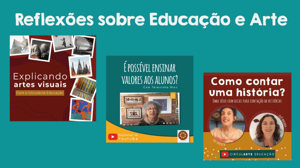 O canal Circularte Educação oferece uma comunicação direta com você por meio de vídeos que estão organizados em várias playlists. A playlist Reflexões sobre Educação e Arte aborda maneiras pelas quais a criação pode fazer parte do teu percurso docente, assim como diversos conteúdos que irão te ajudar no cotidiano escolar. E caso você queira se aprofundar em algum tema, temos os Cursos que permitem esse mergulho. Oficinas é uma playlist mão na massa, com inúmeras propostas em todas as linguagens da arte. Arte na BNCC oferece uma reflexão para que você possa compreender melhor o que a Base Comum Currícular propõe sobre o ensino de arte. Perseguindo um artista possibilita conhecer a obra de alguém pelo olhar sensível de outro artista, que gravou o vídeo. E nos Museus Imperdíveis você poderá conhecer diversos museus espalhados pelo mundo e descobrir como utilizálos no trabalho docente.